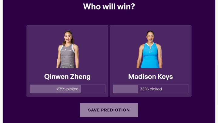 这场比赛,谁能赢球晋级16强?WTA官方公布的调查问卷显示,郑钦文67%的赢球概率,高于对手凯斯的33%。