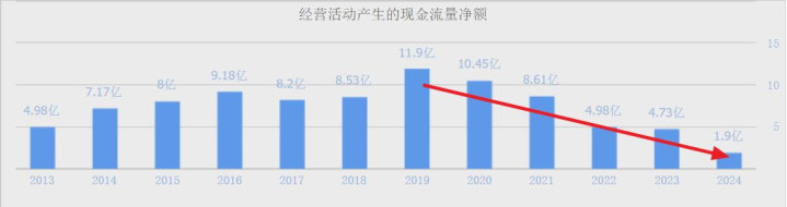 随着营收和利润的下降。公司的经营现金流也出现明显下降。这说明公司的盈利能力和业务确实处于收缩状态。