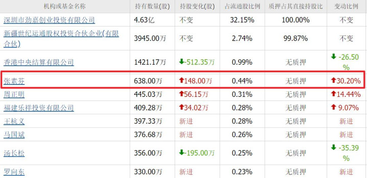结果,就这样,张素芬还又在三季度加仓了148万股,合计持有638万股,位列第四大流通股东。