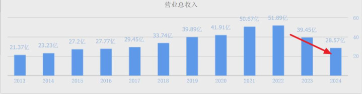而且,公司不仅股价大跌,业绩也同样已经连降三年。