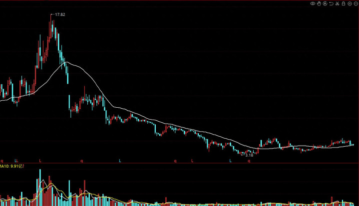 公司连跌三年直接从17.82,跌到了3.18,然后又横盘了一年半,硬是在本轮科技行情里面一点没涨。